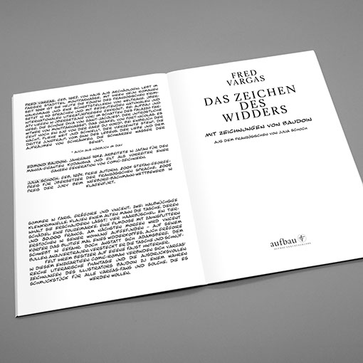 Aufbau Verlag | Hardcover Fred Vargas | Das Zeichen des Widders Inhalt | Lettering, technische Umsetzung Einband | Konzept, Gestaltung | Heilmann & Hissmann, Hamburg