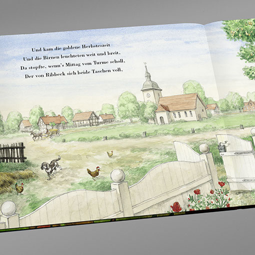 Aufbau Verlag | Bilderbuch Theodor Fontane | Herr von Ribbeck auf Ribbeck im Havelland Einband | Gestaltung, technische Umsetzung Inhalt | Konzept, Gestaltung, technische Umsetzung Einband | Konzept | Ute Henkel, Berlin Illustration | Bernd Streiter