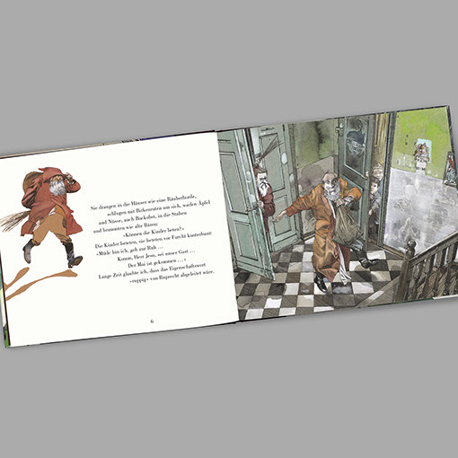 Aufbau Verlag | Bilderbuch Wolfdietrich Schnurre | Die Leihgabe Erwin Strittmatter | Der Weihnachtsmann in der Lumpenkiste Einband | Gestaltung, technische Umsetzung Inhalt | Konzept, Gestaltung, technische Umsetzung Einband | Konzept | Ute Henkel, Berlin Illustration | Klaus Ensikat