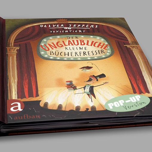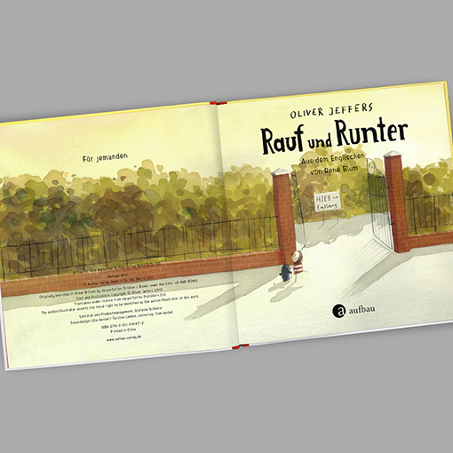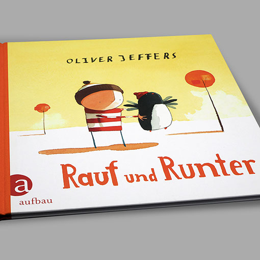 Aufbau Verlag | Bilderbuch Oliver Jeffers | Der unglaubliche Bücherfresser Oliver Jeffers | Rauf und Runter Einband & Inhalt | Lettering, technische Umsetzung Einband & Inhalt | Ute Henkel, Tom Henkel, Torsten Lemme Illustration & Text | Oliver Jeffers