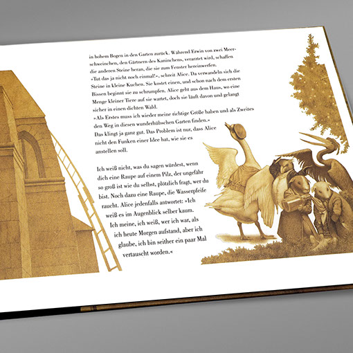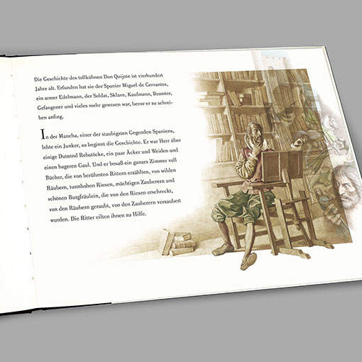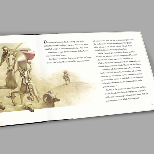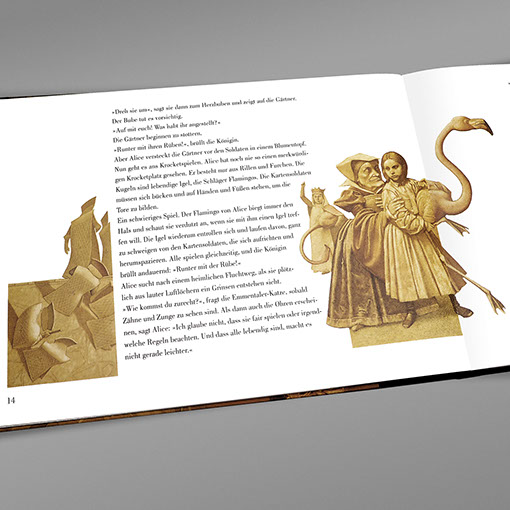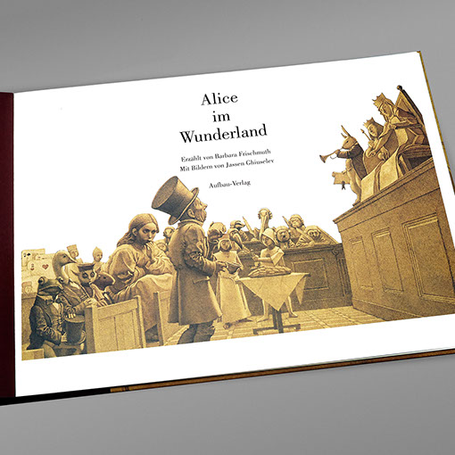 Aufbau Verlag | Bilderbuch Barbara Frischmuth | Alice im Wunderland Jürg Schubiger | Seltsame Abenteuer des Don Quijote Einband | Gestaltung, technische Umsetzung Inhalt | Konzept, Gestaltung, technische Umsetzung Einband | Konzept | Ute Henkel, Berlin Illustration | Jassen Ghiuselev