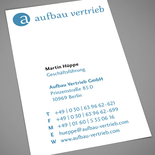Aufbau Vertrieb Visitenkarten | Briefpapier | Mappen | Karten | Website Konzept, Gestaltung, technische Umsetzung