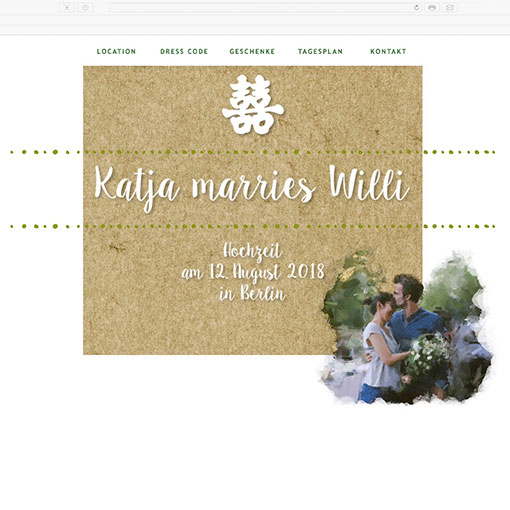 Katja & Willi’s Hochzeit Karten | Save the Date, Einladung, Danksagung Webdesign | Desktop, Tablet, Telefon Deko | Serviette, Platzkärtchen, Tortentopper, Roll-up, Button, Sitzplan Hochzeitsdesign | Konzept, Gestaltung, technische Umsetzung