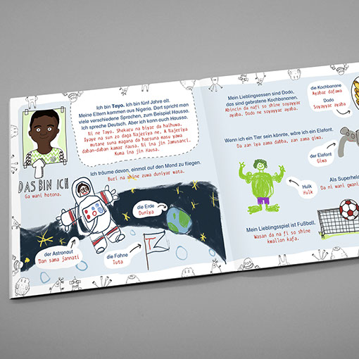 Dudenverlag Berlin Ich bin Yola. Wer bist du? Inhalt | Gestaltung, technische Umsetzung Inhalt | (inkl. Fontanpassung für Hausa und Tigrinisch) Einband | Gestaltung, technische Umsetzung | 2issue, München