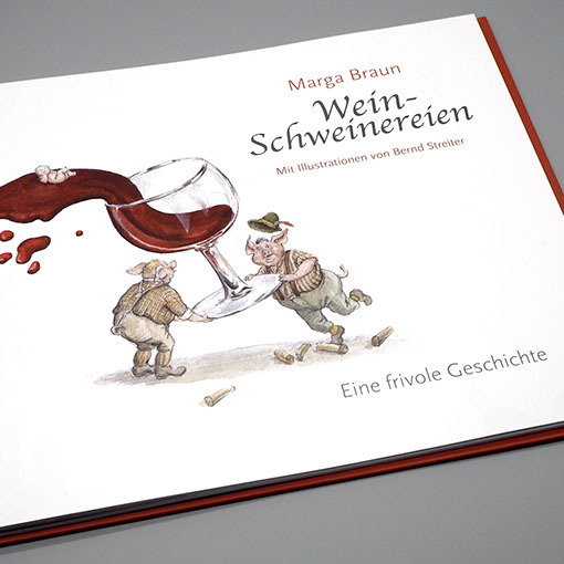 Marga Braun | Bilderbuch Marga Braun | Wein-Schweinerein Einband | Gestaltung, technische Umsetzung Inhalt | Konzept, Gestaltung, technische Umsetzung Illustration | Bernd Streiter