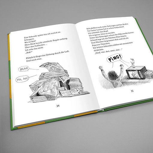 Schaltzeit Verlag | Kinderbuch Maranke Rinck | Martijn van der Linden | Bob Popcorn Einband | Konzept, Gestaltung, technische Umsetzung Inhalt | Konzept, Gestaltung, Lettering, technische Umsetzung Illustration | Martijn van der Linden