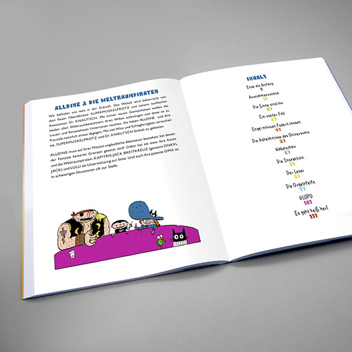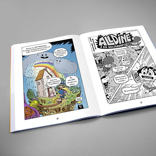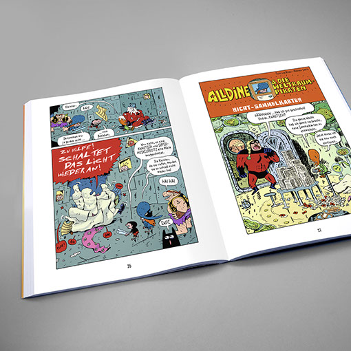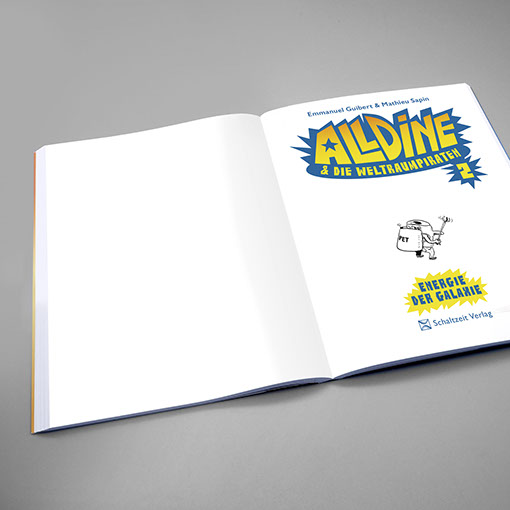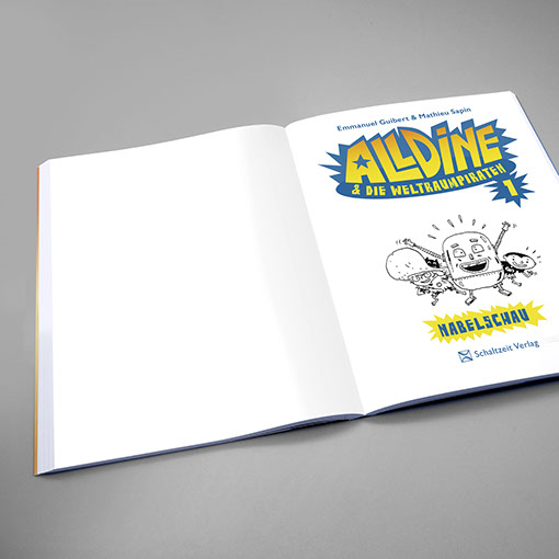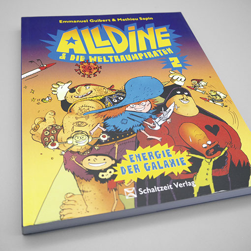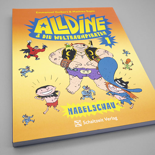 Schaltzeit Verlag | Kindercomic Emmanuel Guibert | Mathieu Sapin | Alldine & die Weltraumpiraten Einband | Konzept, Gestaltung, technische Umsetzung Inhalt | Konzept, Gestaltung, Lettering, technische Umsetzung Illustration | Mathieu Sapin