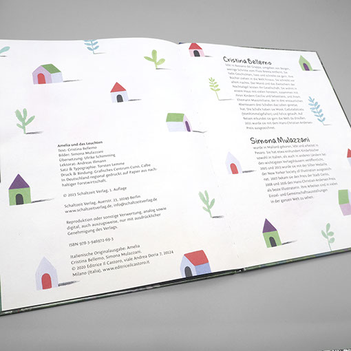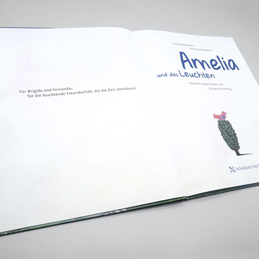 Schaltzeit Verlag | Kinderbuch Cristina Bellemo | Simona Mulazzani | Amelia und das Leuchten Einband | Typographie, technische Umsetzung Inhalt | Typographie, technische Umsetzung Illustration | Simona Mulazzani