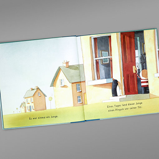 Aufbau Verlag | Bilderbuch Oliver Jeffers | Das Herz in der Flasche Oliver Jeffers | Pinguin gefunden Einband | Gestaltung, technische Umsetzung Inhalt | Gestaltung, Lettering, technische Umsetzung Einband | Konzept | Ute Henkel, Berlin Illustration & Text | Oliver Jeffers