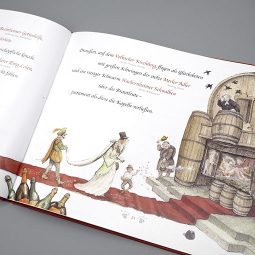 Marga Braun | Bilderbuch Marga Braun | Wein-Schweinerein Einband | Gestaltung, technische Umsetzung Inhalt | Konzept, Gestaltung, technische Umsetzung Illustration | Bernd Streiter
