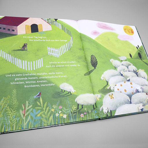 Schaltzeit Verlag | Kinderbuch Cristina Bellemo | Simona Mulazzani | Amelia und das Leuchten Einband | Typographie, technische Umsetzung Inhalt | Typographie, technische Umsetzung Illustration | Simona Mulazzani